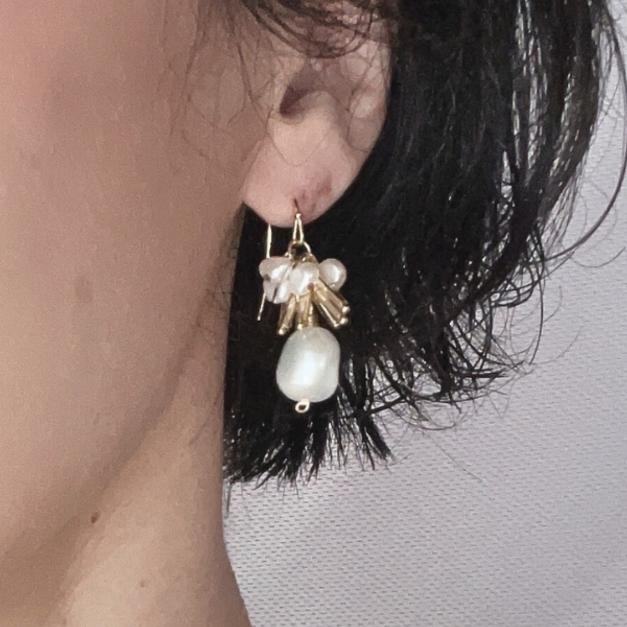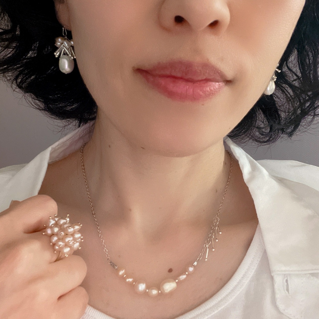 ころころとしたバロックパールとガラスビーズで華やかなピアスとネックレスのset